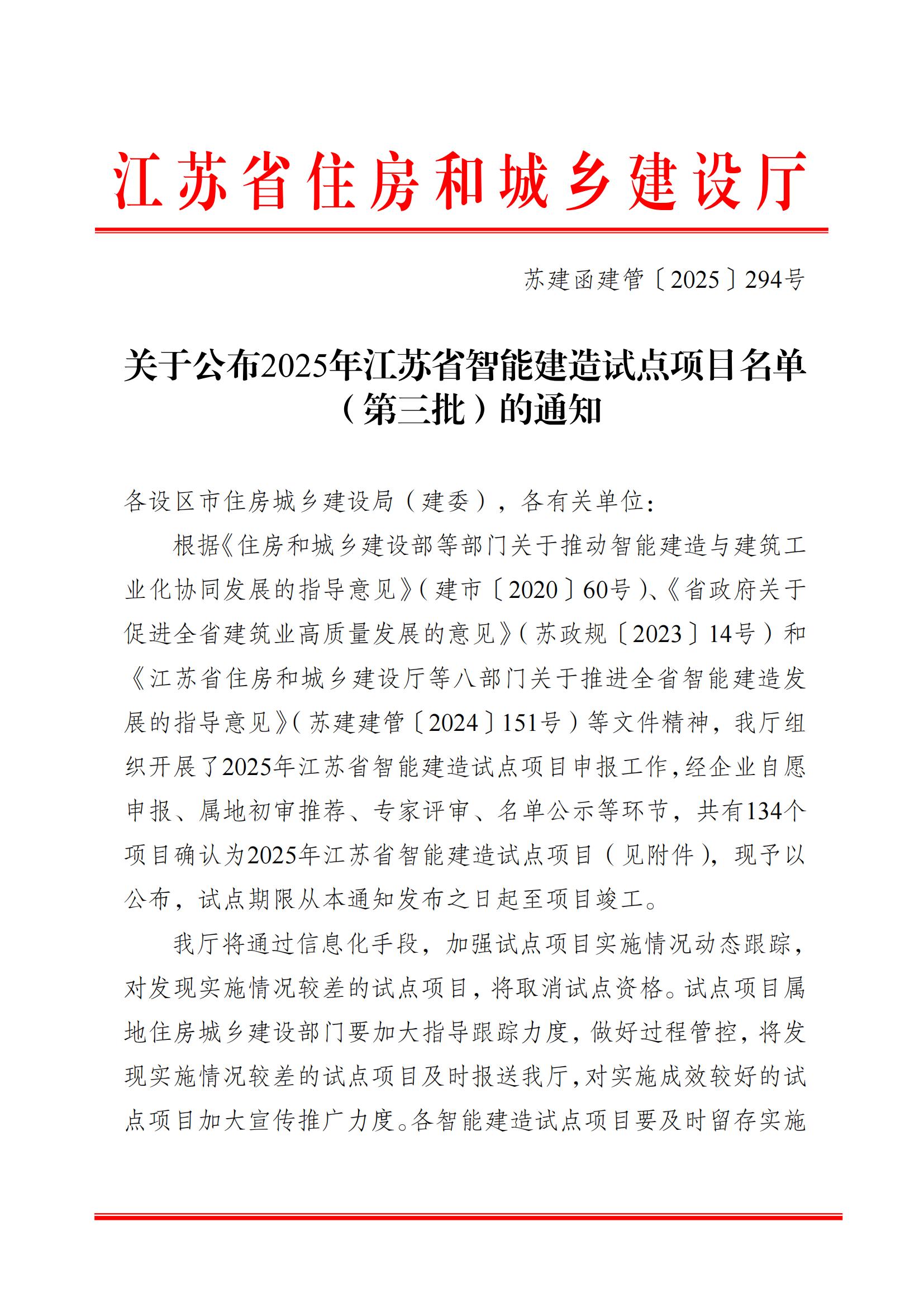 近日,江蘇省住房和城鄉(xiāng)建設(shè)廳正式公布了2025年度江蘇省智能建造試點(diǎn)項目名單(···